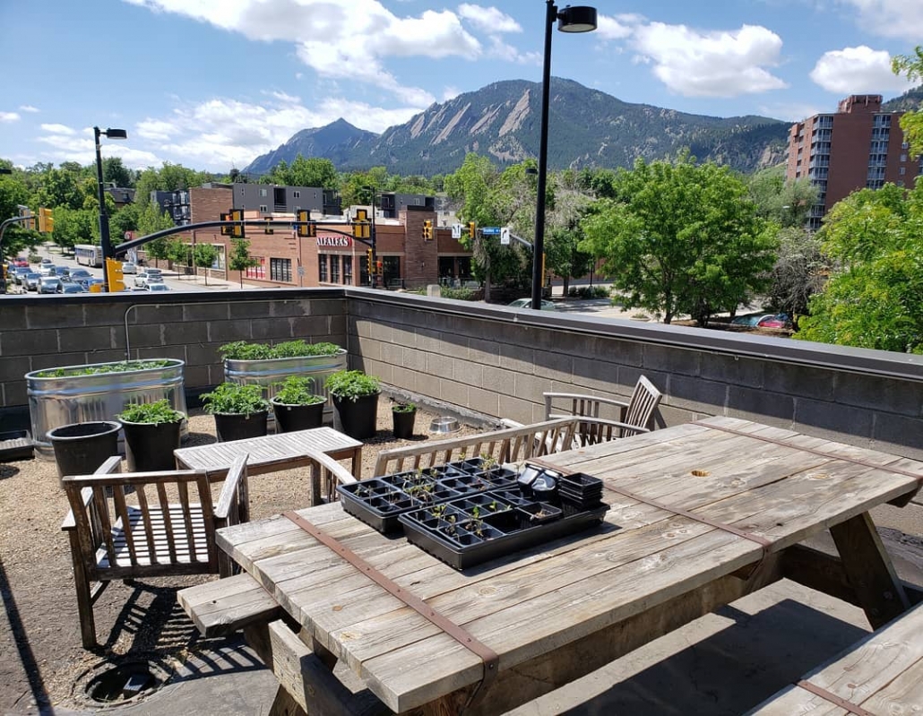 The Loft pairs exposed brick and warm wood floors with sweeping views of the Flatirons, creating a bright, inspiring setting for workshops, meetings, and intimate gatherings elevated by Boulder’s iconic landscape.